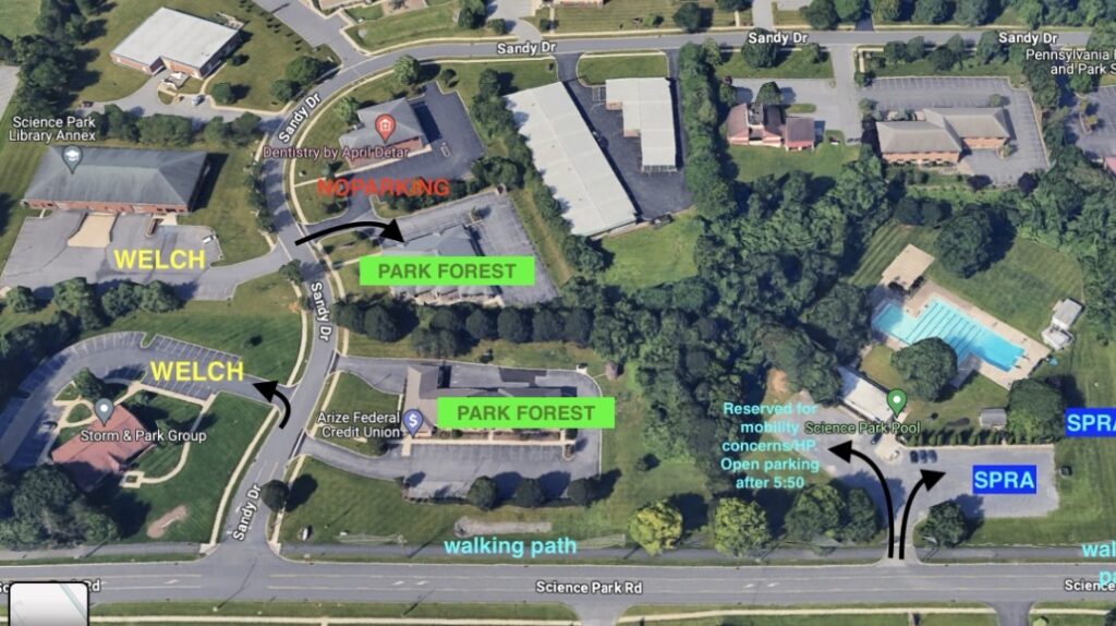 • Please do not park on the street in the Park Forest neighborhood.  Please use the school parking lots at Park Forest Middle School and Park Forest Elementary for overflow parking.